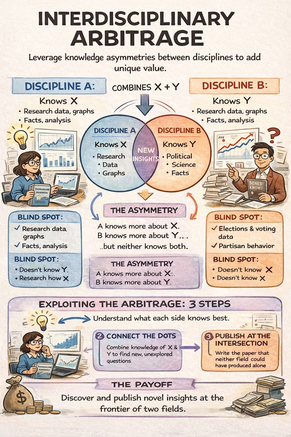 Before moving on, I wanted to credit this “arbitrage” label to Ichiro Kawachi. I very vividly recall him talking about these arbitrage opportunities being THE KEY advantage of pursuing interdisciplinary scholarship— in the context of the (sadly now defunct) Robert Wood Johnson Foundation Health & Society Program (RIP), including at Columbia where I was in cohort ~10.